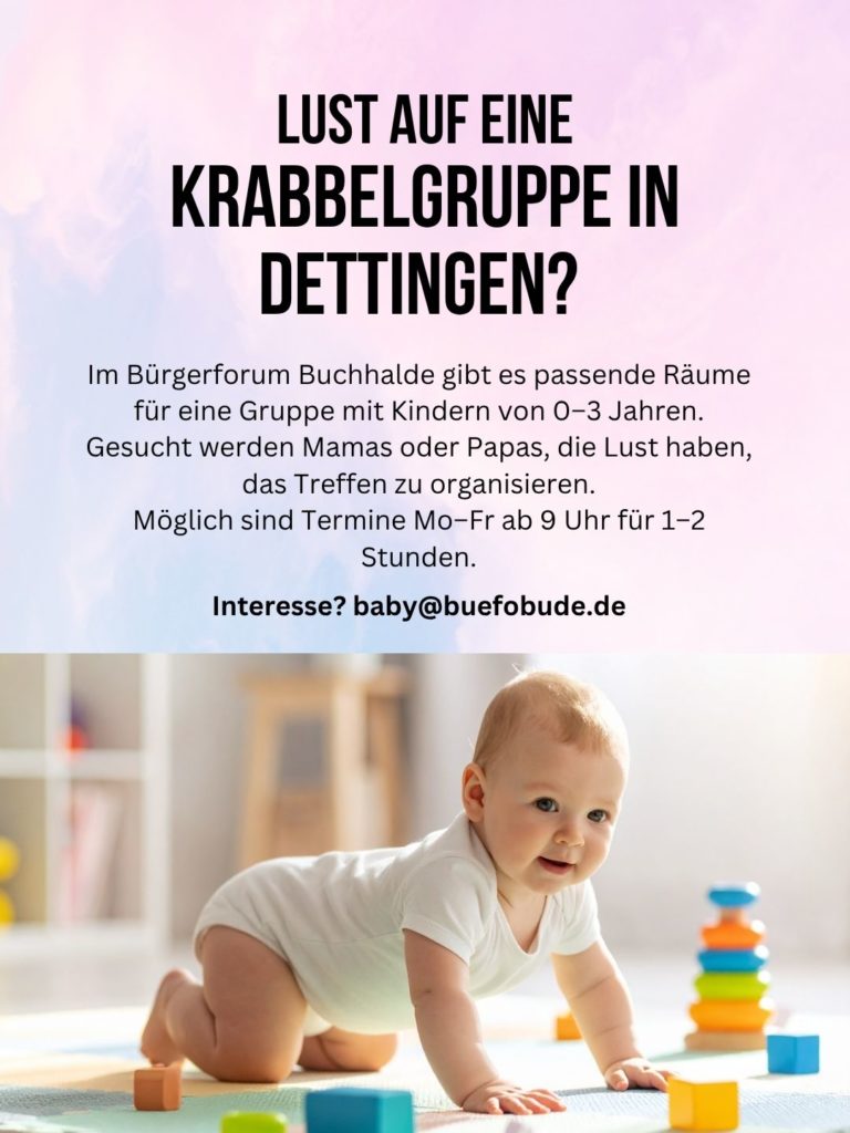 Im Bürgerforum Buchhalde stehen passende Räume und kindgerechte Ausstattung bereit, um eine neue Krabbelgruppe für Kinder von 0 bis 3 Jahren ins Leben zu rufen.