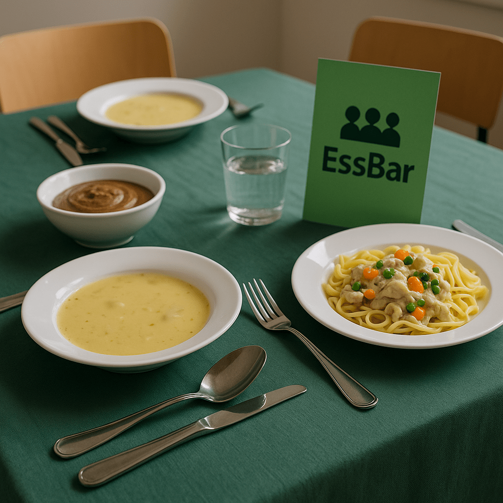 - Gemeinschaft & Teilhabe: Die EssBar soll ein Ort der Begegnung sein — unabhängig von Alter, Herkunft, Lebenssituation. Zusammen Essen verbindet, schafft Raum für Austausch, Gespräche und Gemeinschaft.