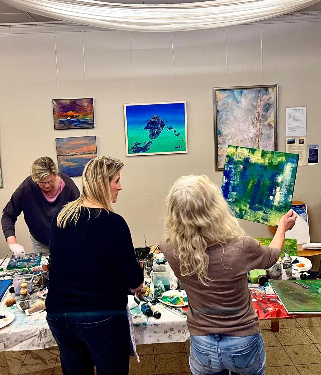 Barbara Hennecke führte Schritt für Schritt durch die Möglichkeiten der abstrakten Malerei – ohne dabei kreative Grenzen zu setzen. Im Gegenteil: Die eigene Fantasie stand im Mittelpunkt.