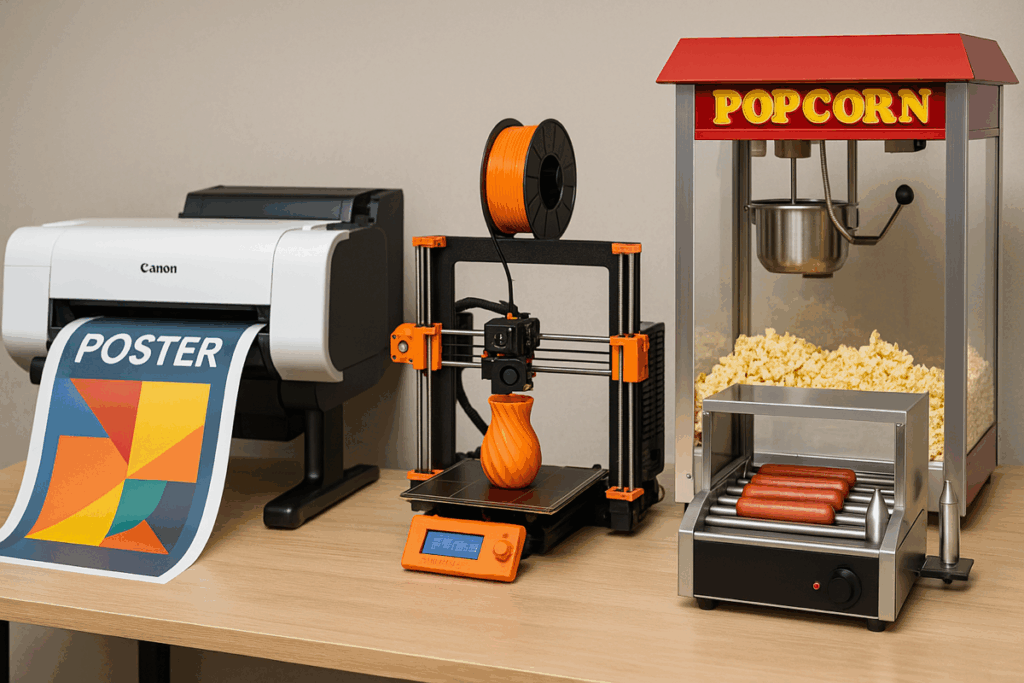 Unser Druck- und Verleihservice bietet praktische Lösungen für Vereine, Firmen und Privatpersonen: Vom Plakatdruck in DIN A1 bis A3 über den 3D-Druck-Service bis hin zum Verleih von Geräten wie Popcorn-Maschine oder Hotdog-Rollengrill – stets inklusive passendem Zubehör. So sparen Sie sich teure Anschaffungen und nutzen unkompliziert unsere vorhandene Ausstattung direkt vor Ort.